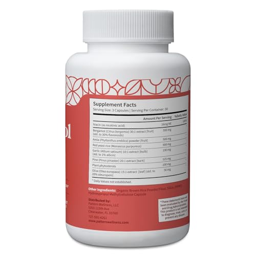 Pattern Wellness Cholesterol Complex Supplement – All-Natural Balancing Formula – Boost Overall Wellness – 3rd Party Lab Tested – 90 Vegan Capsules