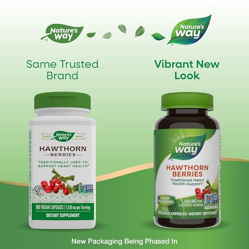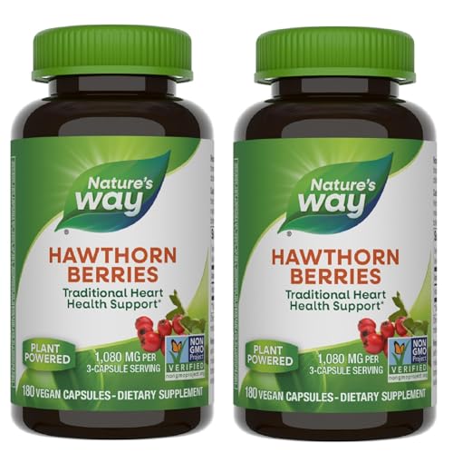 Nature’s Way Herbal Hawthorn Berries, Traditional Heart Health Support*, 180 Vegan Capsules (Packaging May Vary) – 2 Pack