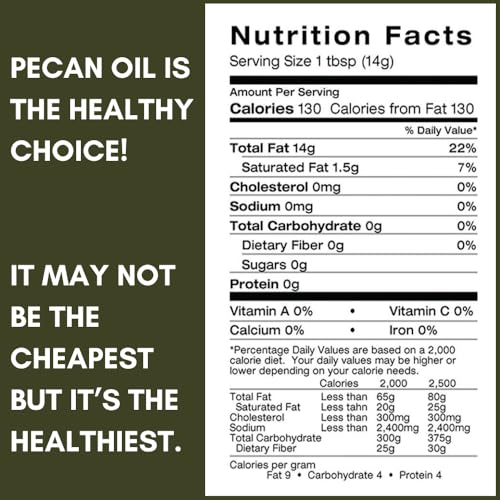 Versatile: With its high smoke point, pecan oil is suitable for various cooking methods, including sautéing and frying.